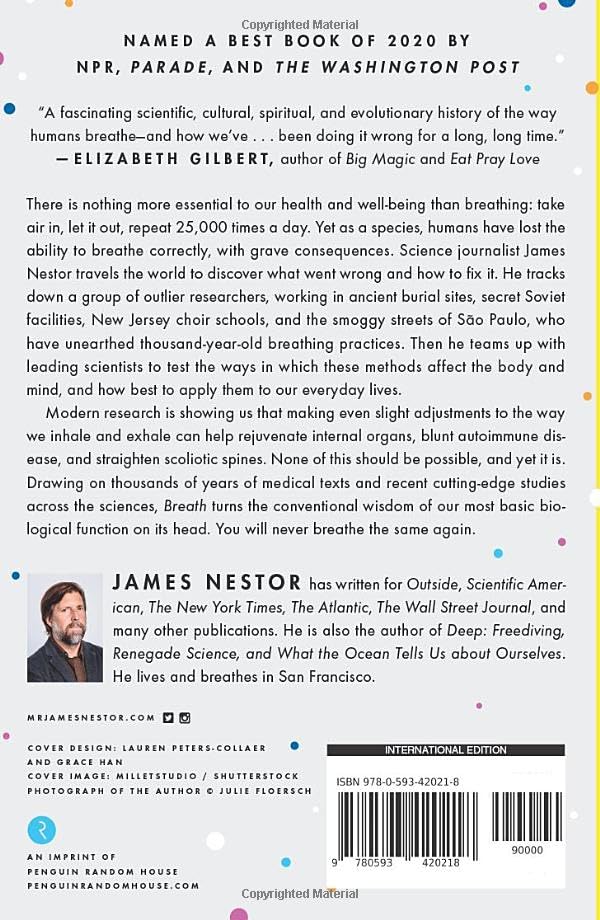 Journalist James Nestor travels the world to figure out what went wrong and how to fix it. The answers aren't found in pulmonology labs, as we might expect, but in the muddy digs of ancient burial sites, secret Soviet facilities, New Jersey choir schools, and the smoggy streets of Sao Paulo. Nestor tracks down men and women exploring the hidden science behind ancient breathing practices like Pranayama, Sudarshan Kriya, and Tummo and teams up with pulmonary tinkerers to scientifically test long-held beliefs about how we breathe.