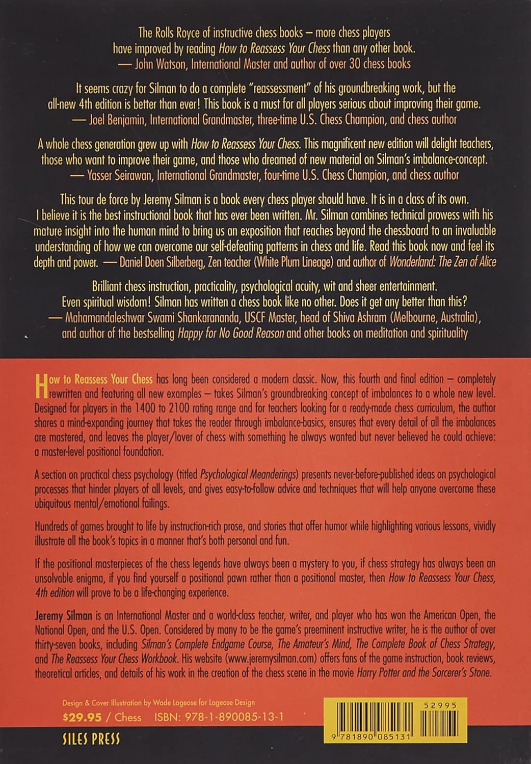 How to Reassess Your Chess is the popular step-by-step course that will create a marked improvement in anyone's game. In clear, direct language, Silman shows how to dissect a position, recognize its individual parts and ultimately find the move that conforms to the needs of that particular situation. By explaining the thought processes that go into a master's choice of move, the author presents a system of thought that makes advanced strategies seem clear, logical and at times even obvious. How the Reassess Your Chess offers invaluable knowledge and insight that cannot be found in any other book.